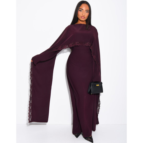 Langes, tailliertes Kleid mit Spitzenbesatz am Cape