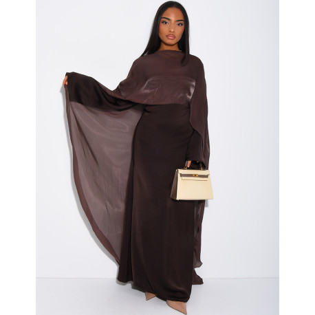 Set aus Kleid aus dickem Satin und Cape aus schillerndem Voile