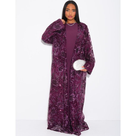 - Transparenter Kimono aus Voile mit aufgestickten Pailletten