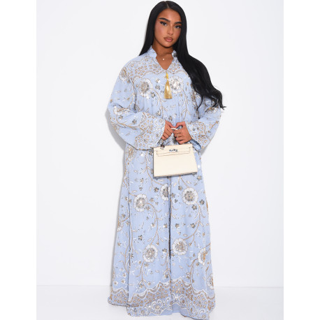 Weite Abaya mit goldenen Stickereien und Pompon