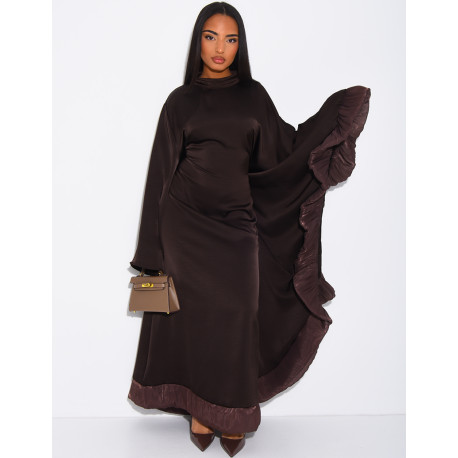 Abaya aus Satin mit seitlichen Volant-Einsätzen