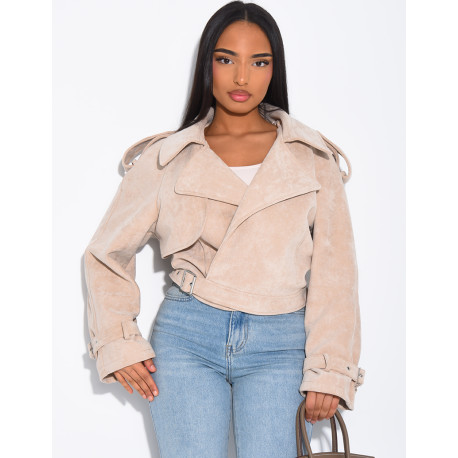Kurze Perfecto-Jacke aus Wildlederimitat zum Binden