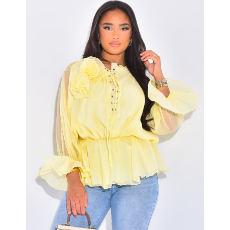 Schnürbluse aus Chiffon mit Rüschen.