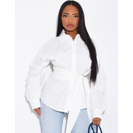 Einfarbiges Baumwollhemd zum Binden in der Taille