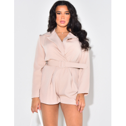 Combishorts mit Schulterpolstern und Gürtel in der Taille