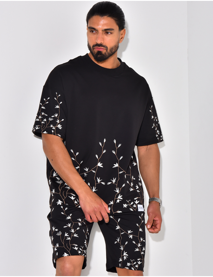 Set aus Shorts und T-Shirt mit Blumenstickerei