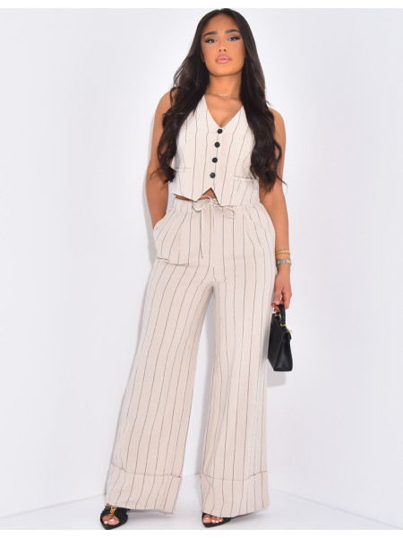 Set aus ärmelloser Weste und gerader Hose mit Streifen in Leinenoptik.