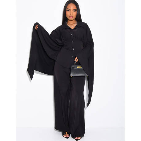 Set aus Satin-Hose und Hemd mit Bindeband am Rücken
