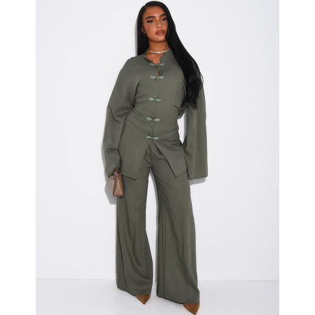 Leinen-Set aus Hemd mit Knopfleiste und Hose