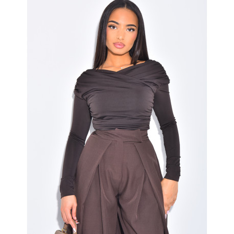 Langärmliges Oberteil mit drapiertem Wickeleffekt