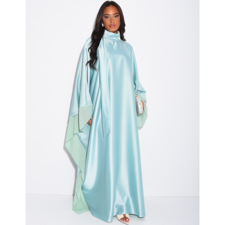 Abaya-Kleid aus dickem Satin mit transparenten Voile-Bordüren