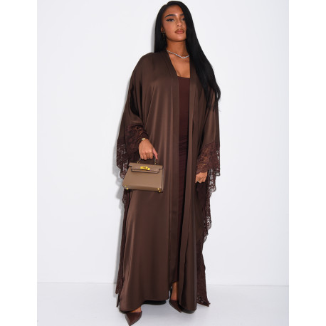 Fließender Kimono aus Satin mit Spitzenbesatz