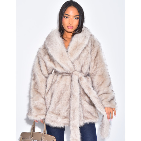 Halblanger Mantel aus Kunstfell mit Gürtel