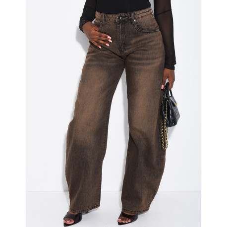 Braune Ballon-Jeans mit Vintage-Waschung