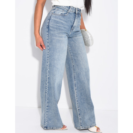 Jeans mit hoher Taille, geradem Schnitt und gekreuzter Knopfleiste