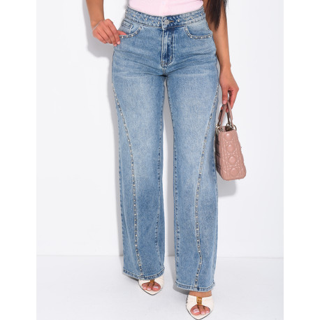 Jeans mit geradem Schnitt, Nieten und Kontrastnähten
