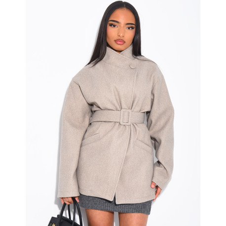 – halblanger Schnitt, tailliert, Knopf am Kragen