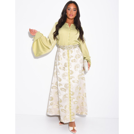 Set aus Kleid und irisierendem Schleier mit Schmuck vorne.