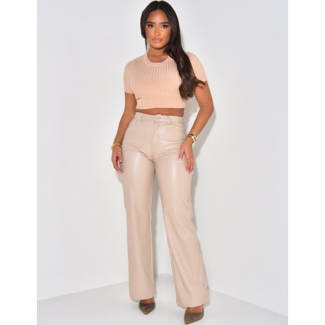 Hoch geschnittene, gerade geschnittene Hose aus veganem Leder.