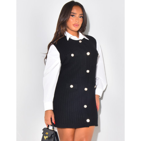 Set aus Rock und Pullover aus Rippstrick mit Bordüren.