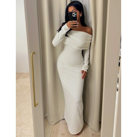 Langes Kleid mit strukturiertem U-Boot-Ausschnitt