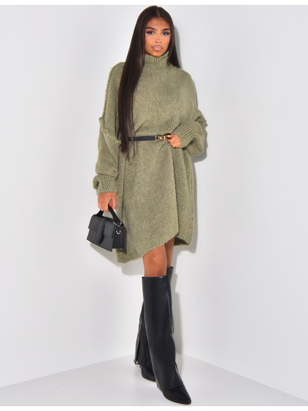 - Mittellanges Kleid, lange Ärmel, hoher Kragen,