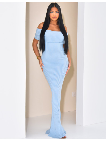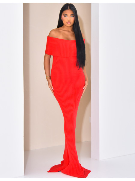 - Langes Kleid, Bardot-Ausschnitt, ärmellos