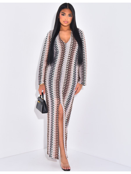 Langes Kleid aus mehrfarbigem Häkelgarn