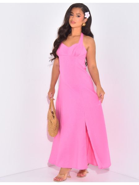 Tailliertes Kleid aus Leinen mit Schlitzen