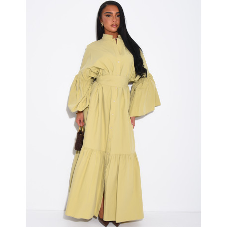 Langes, weit geschnittenes Baumwollkleid zum Binden in der Taille