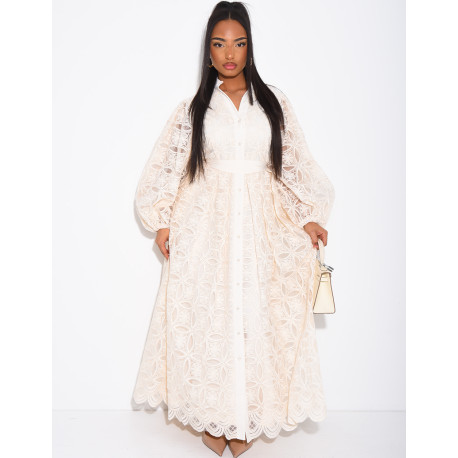 Ärmelloses langes Kleid mit gestickten Blumen