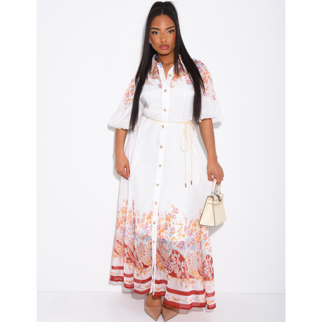 Set aus einem langen Kleid aus Voile mit Blumenprint und einem Unterkleid mit Gürtel