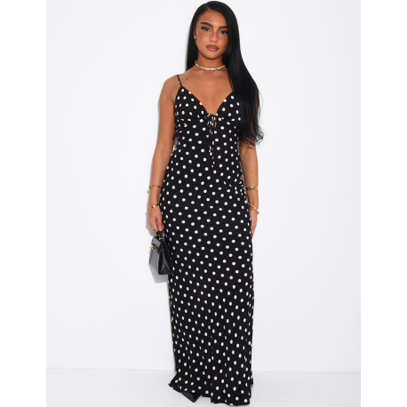 Langes Baumwollkleid mit Punktmuster zum Binden