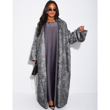 Ensemble robe en satin et kimono texturé à perles aux poignets