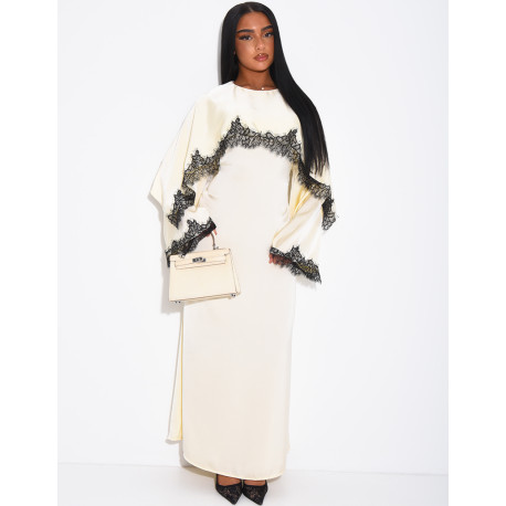 Robe longue en satin épais à cape bordure en dentelle