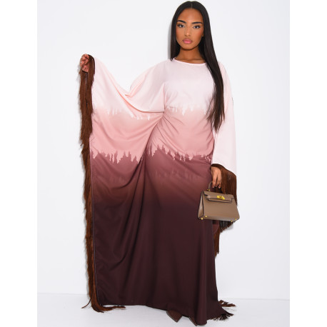 Abaya en satin dégradé à franges sur les bordures
