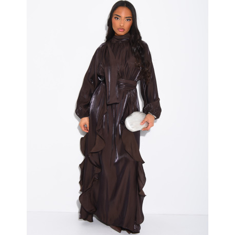 Robe en satin brillant à volants et ceinture à la taille