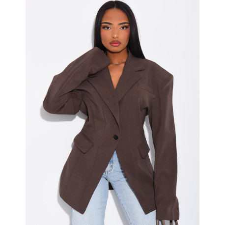 Veste de blazer épaules structurées et cintrée à la taille