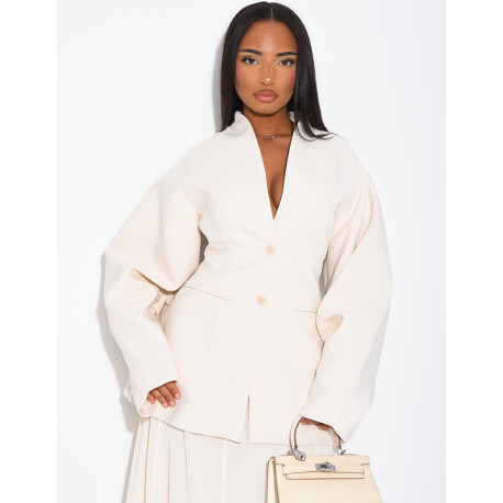 Blazer mi-long cintré à manches ballon