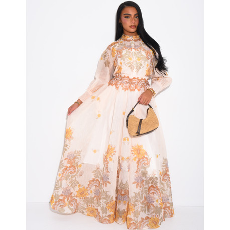 Ensemble 3 pièces en voile imprimés jupe longue, blouse et débardeur