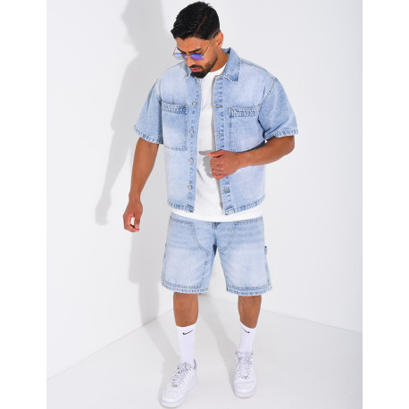 Ensemble texturé short et chemise manches à motifs vague en relief