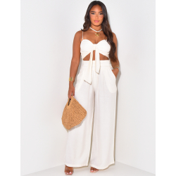 Ensemble pantalon et crop top effet lin