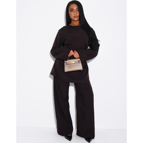 Ensemble pantalon et blouse longue à nouer dans le dos