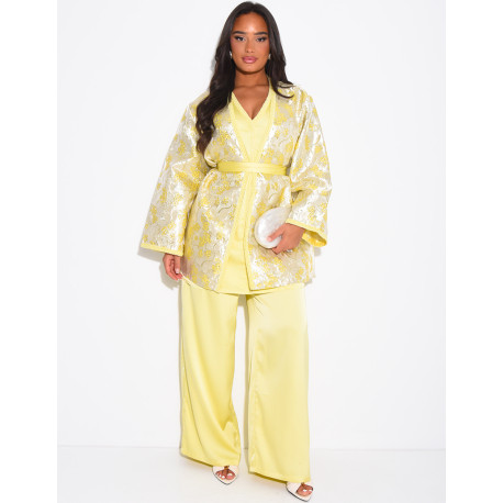 Ensemble kimono en tissu brocart pantalon et tunique assortie