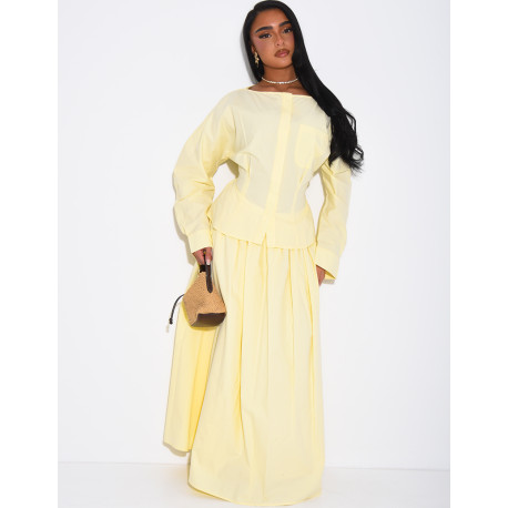 Ensemble jupe longue bouffante en coton et chemise cintrée