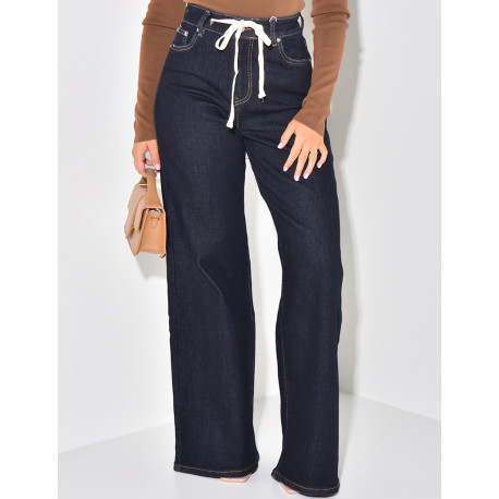Jeans coupe droite stretchy taille haute à lacets
