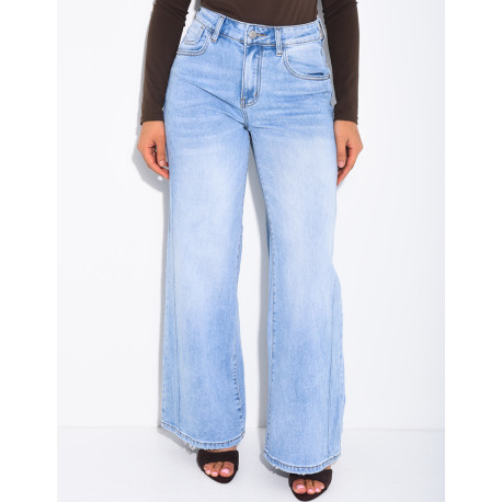 - jeans taille haute, coupe évasée
