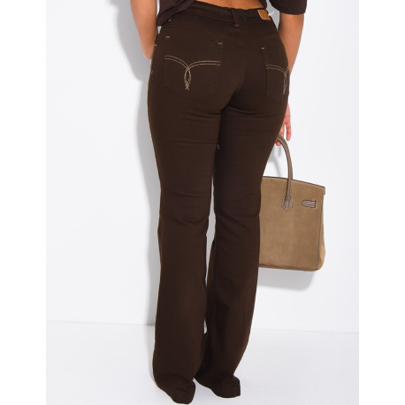 Jeans taille basse flare à broderies sur les poches