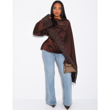 Top en satin avec cape en dentelle sur les bordures
