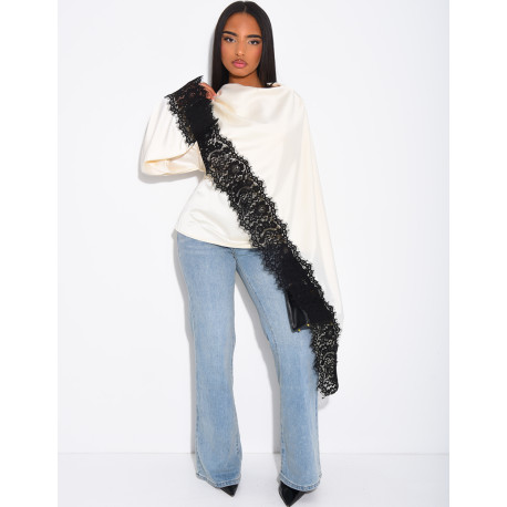 Top en satin avec cape en dentelle sur les bordures